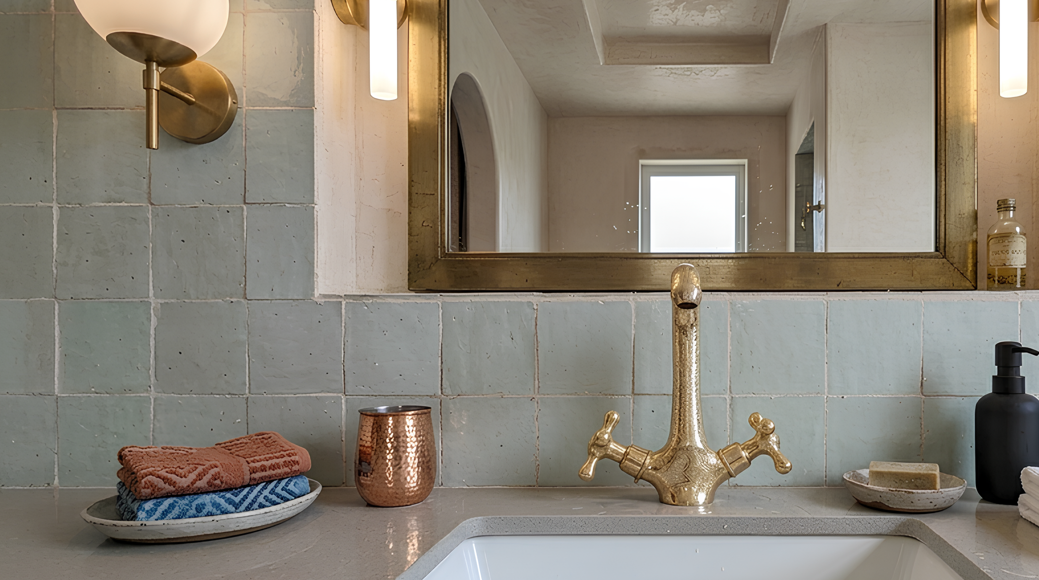 Handmade Brass Kitchen Taps: Moroccan Bib Style, Oil-Rubbed Finish