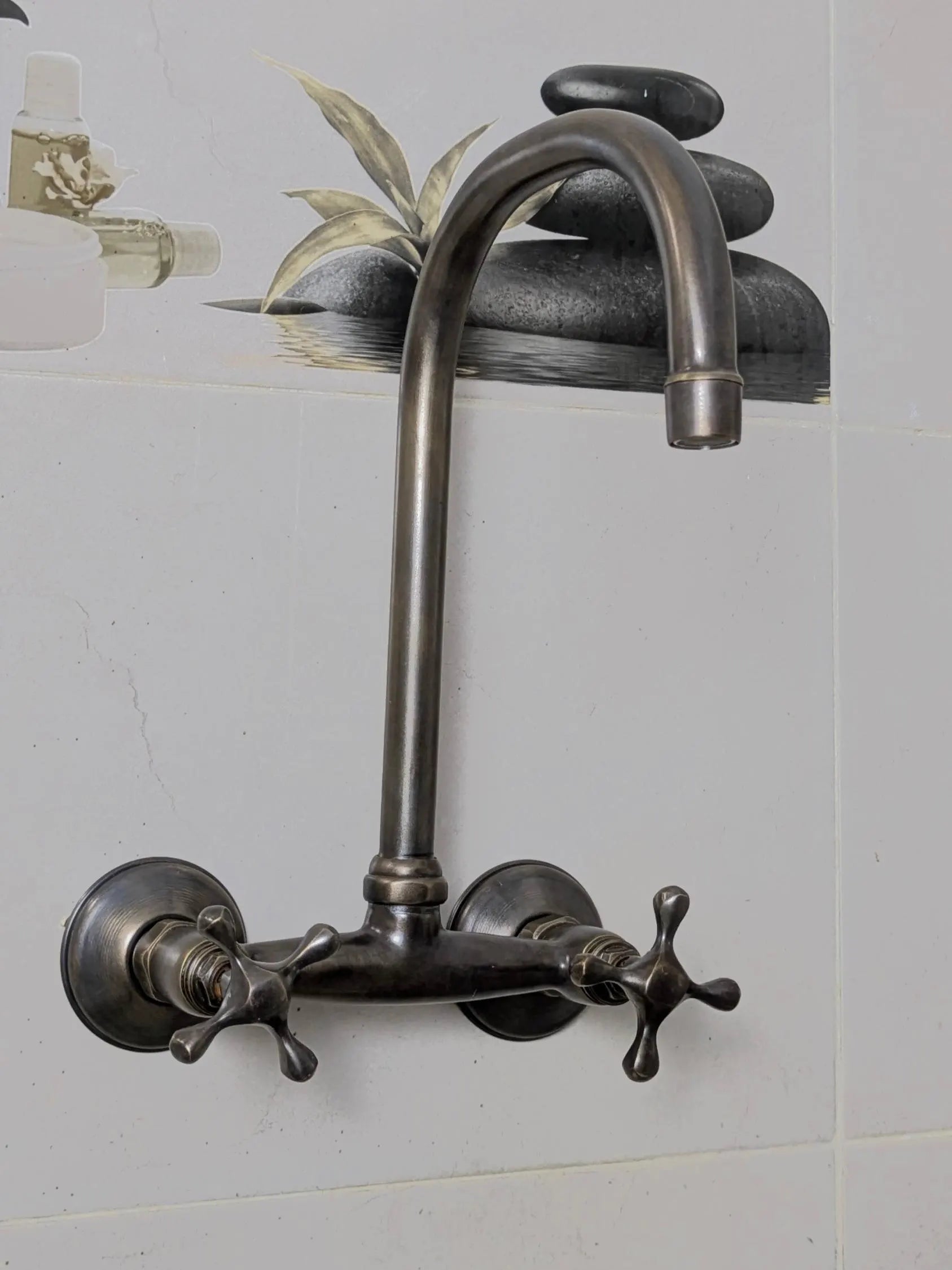 Our wall-mounted brass faucet with cross handles combines vintage style with modern functionality, making it perfect for your kitchen or bathroom sink. This single-hole, 2-handle faucet is a practical choice and a statement piece, offering classic charm at an affordable price.