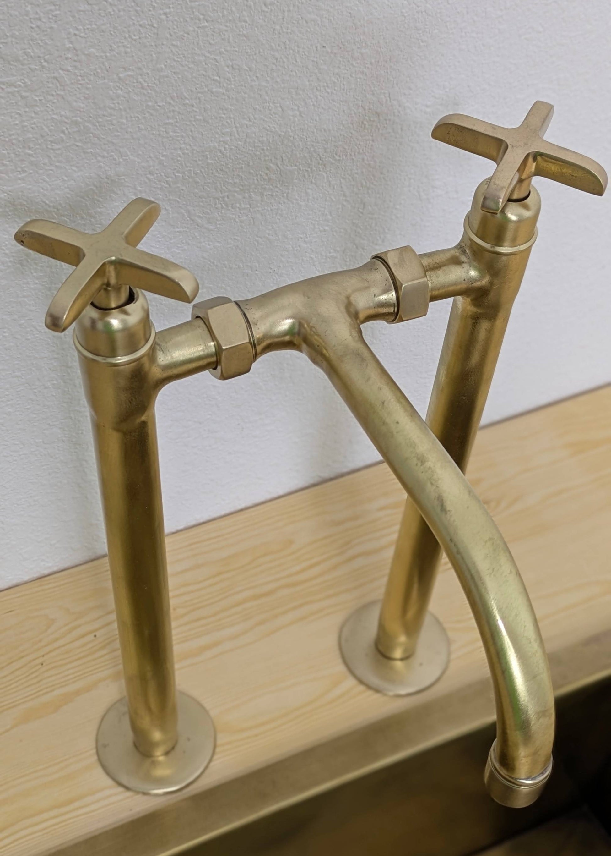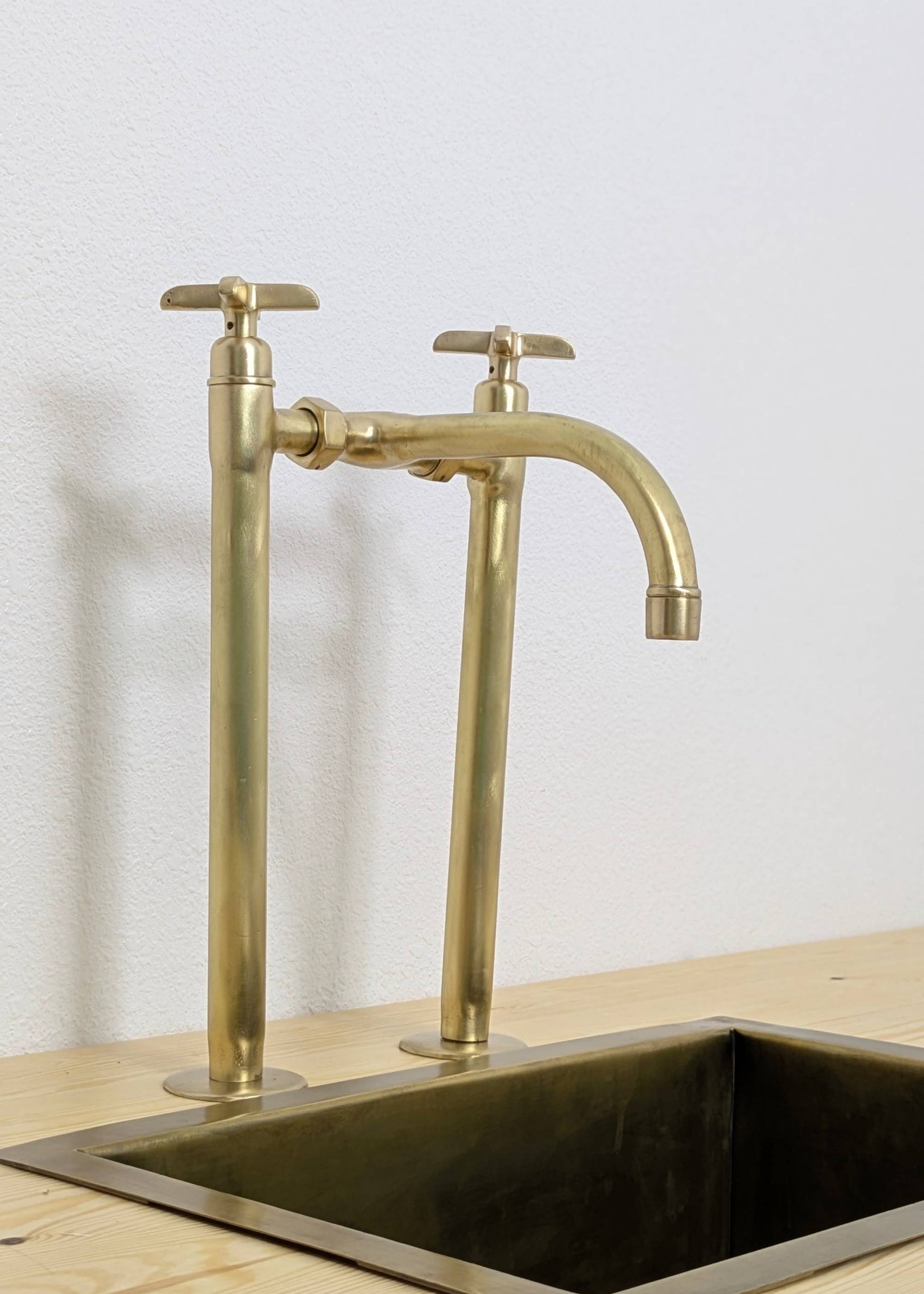 ↪ Unlacquered Brass Finish: The faucet develops patina over time, a natural aging process. It is delivered with a shiny, polished look, but it will start to patina with time.