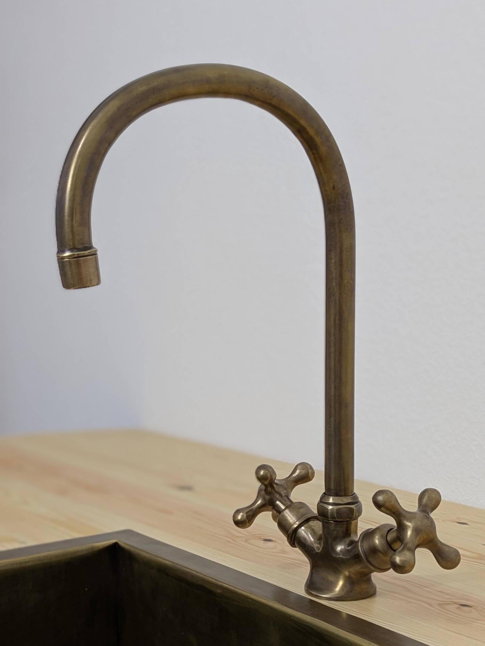 The Artibrass curved brass sink tap is a traditional faucet with an oil-rubbed timeless finish, adding character and charm. It fits US plumbing standards ½” NPT. The gooseneck can be customized with different spout lengths and reaches for a perfect fit to all your needs.