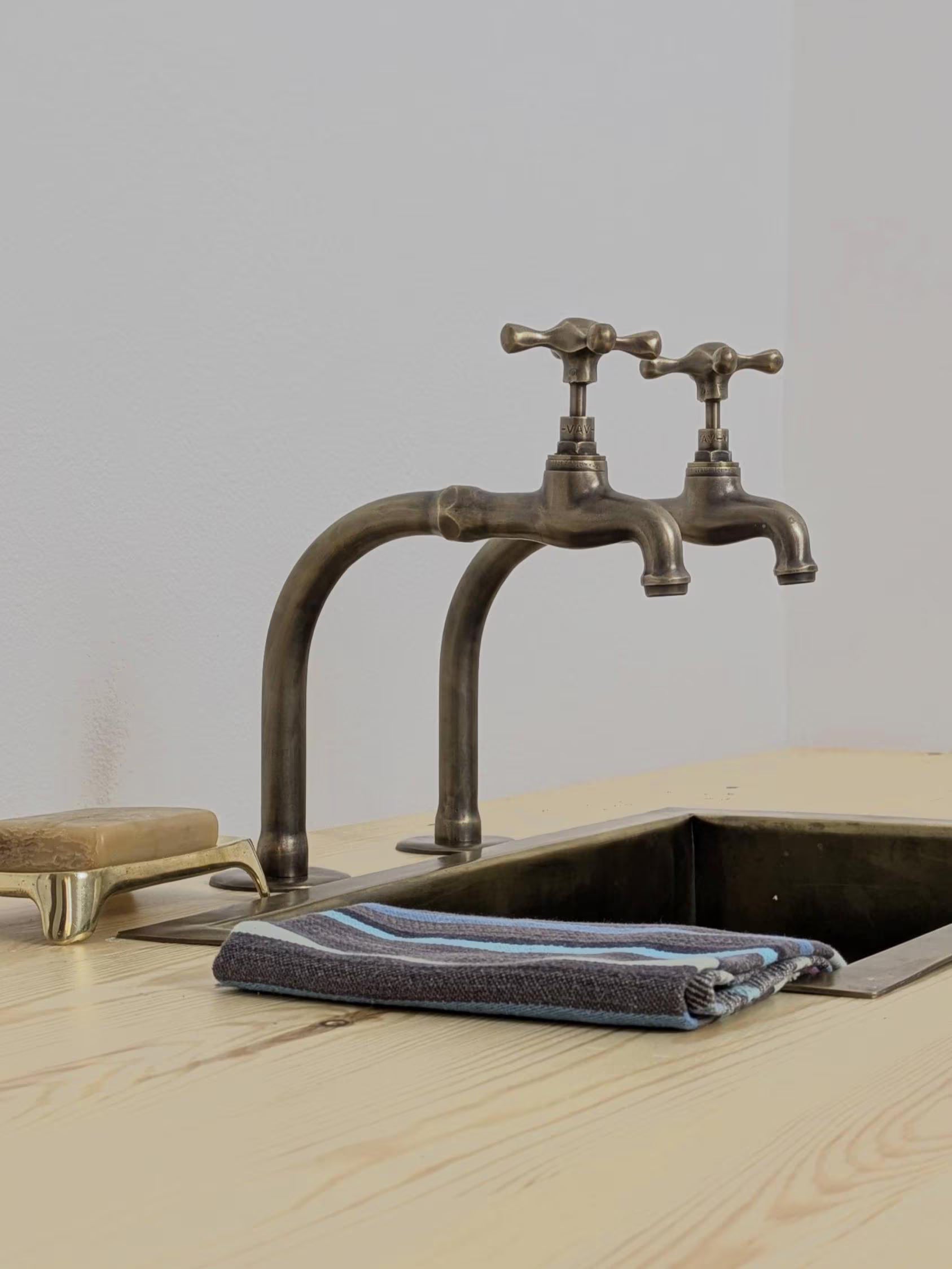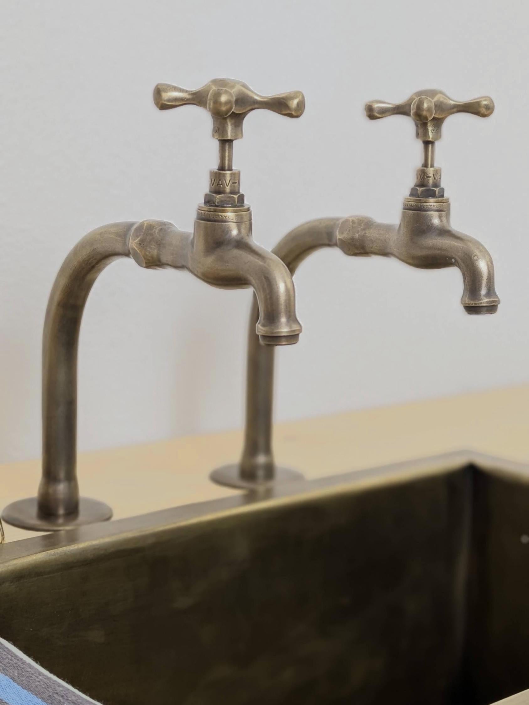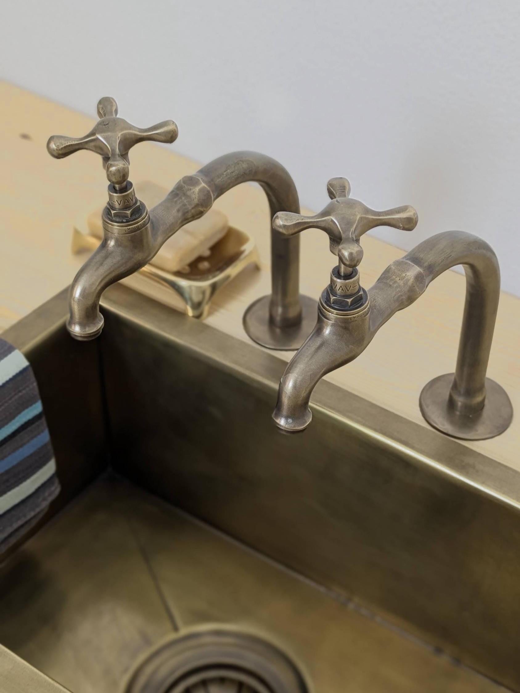 Handmade Brushed Brass Pillar Sink Faucets - French Style 17cm high - Custom size.