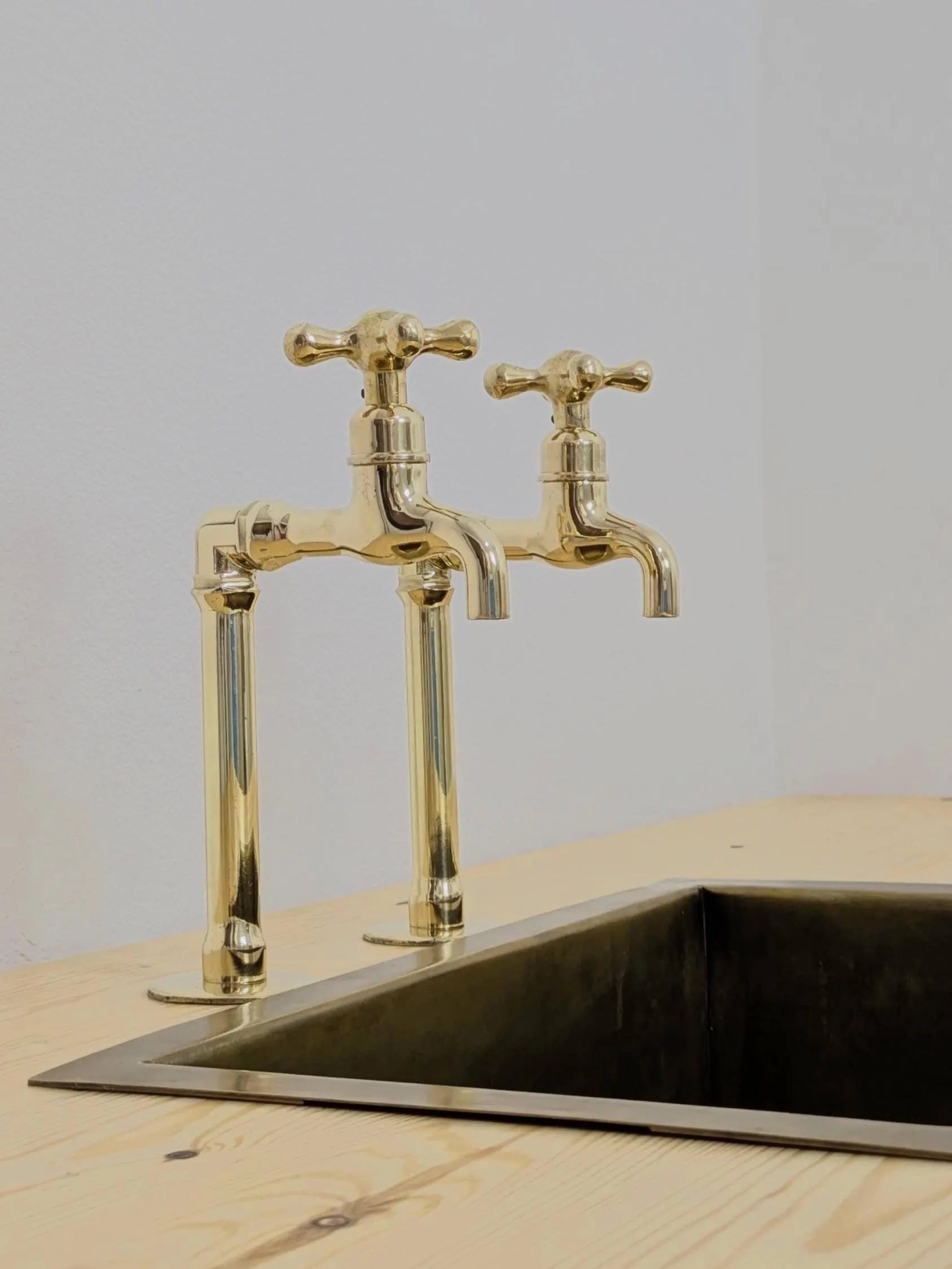 Unlacquered Brass Taps – Twin Sink Faucets, Hot and Cold Water with different handle options